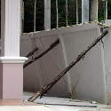 I was riding around the other day on my motorbike with the dog and saw something that amazed me. I was in this pretty good area on the hill where they are building some pretty nice houses. Well I saw this one house that looked like it was completed but had never been lived in. I slowed down and saw why!!!!. The idiot that was building his house next door and up the hill decided to truck in a lot of fill dirt to level off his land. Jack ass just piled it up on the neighbor's wall like it was a retaining wall or something. It was just some skinny posts with brick and mortar in between., Well when rainy season came the inevitable happened the earth began to settle and pushed out against the wall, nearly tipping it right over into the other guys lot.